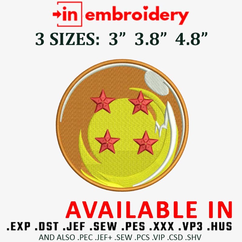 DRAGONBALL Balls Embroidery Design 3 Sizes