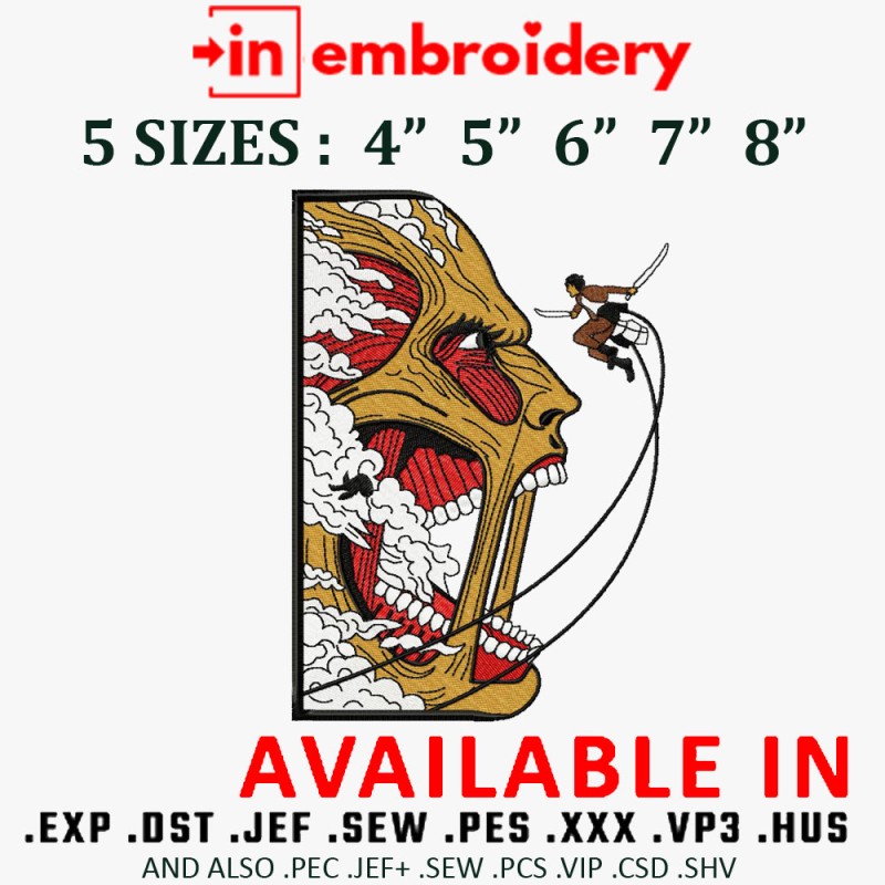 Eren Vs Colossal Anime Embroidery Design 5 Sizes